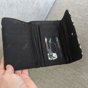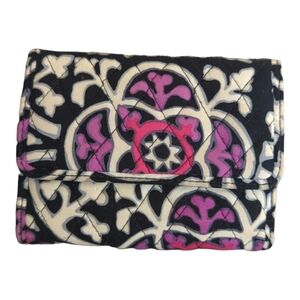 Vera Bradley Scroll Medallion Quilted Black Pink Euro Wallet