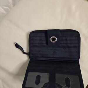 Brand-new with tags! Limited-edition Vera Bradley Seasons Turtle Tote & Wallet Set featuring festive embroidered sea turtles in a snow-globe design. Navy quilted cotton with silver accents — whimsical, coastal-holiday perfection.