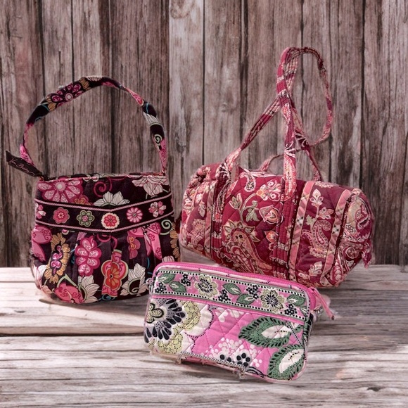 Vera Bradley Set of 3 in Maroon Pink Burgundy Patterns EUC Mini Bags & Zip Pouch