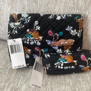 Vera Bradley Set of Brush & Cosmetic Case & Kiss Me Twice Case - Merry Mischief