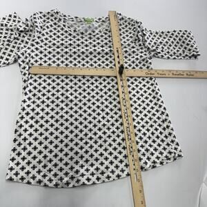 Vera Bradley Shirt Womens Small White Black Long Sleeve Patterned Cotton Spandex Top