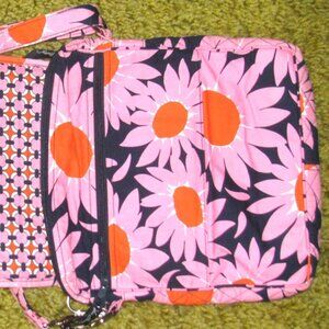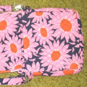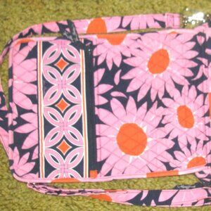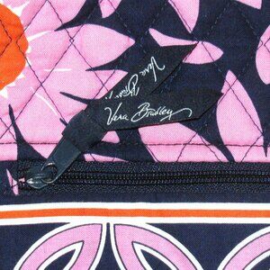 New Without Tags Vera Bradley Shoulder Bag in the retired "Love Me" Quilted Fabric design in colors of Pink, White, Black & Orange. The quilting is in Black. Has 3 black zippers on the openings. Also has magnetic closing for the large flap so that it will stay closed while carrying it. I received this as a gift and never got around to using it. It is cheerful and lovely. Also has adjustable and removable shoulder strap.