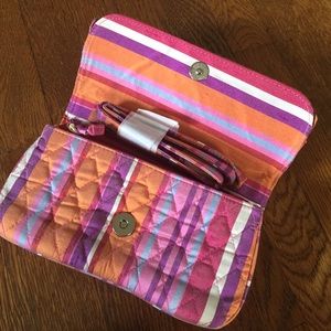 New condition. Never been used. Still has tags. Strap included. Ruffles on the front and classic VB quilting. Perfect for a Spring luncheon.