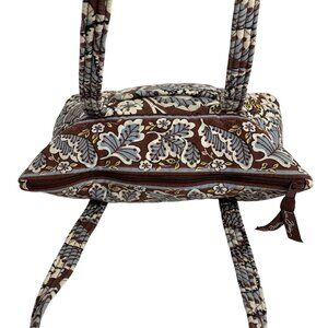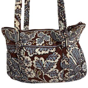 Vera Bradley Slate Blooms Brown/Blue Floral Cotton Quilted Zip Tote Shoulder Bag