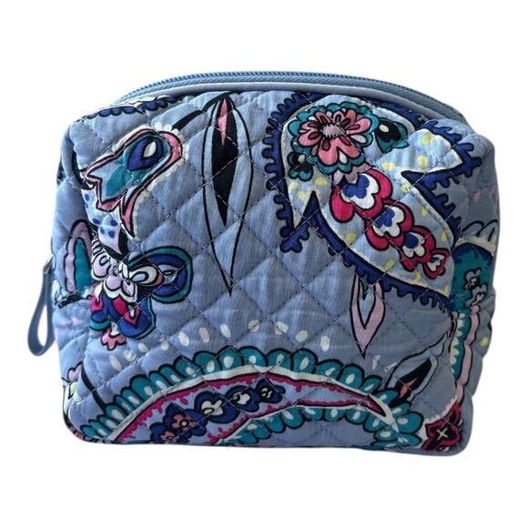 NEW without tags, unused, clean inside and out. Vera Bradley Small Cosmetic Bag in a blue Makani Paisley Print. no tags attached.