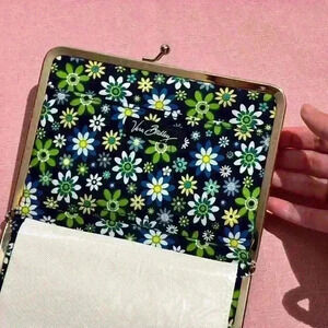 Vera Bradley Small Photo Album Kiss Lock Green Blue Floral Daisy