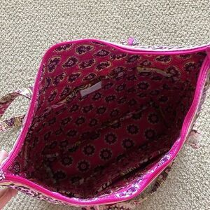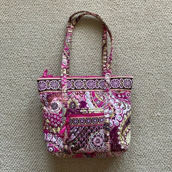 Excellent used condition Vera Bradley small Vera Tote bag in a magenta pattern.