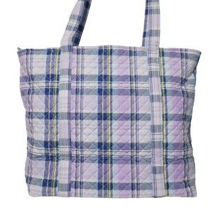 Vera Bradley Vera Tote Quilted Handbag Weekender Amethyst Plaid Travel NWT