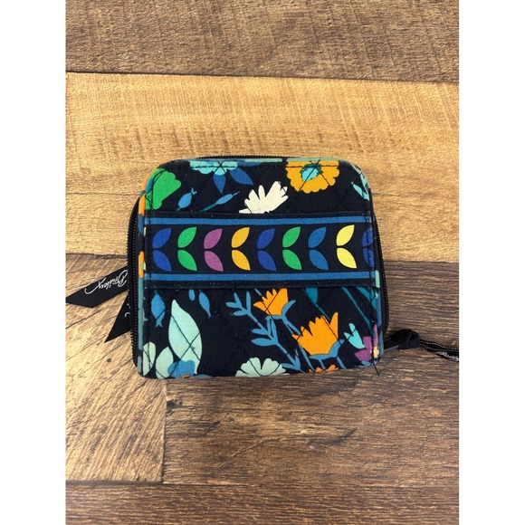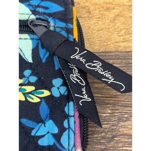 Vera Bradley Small Zip Around Wallet Black Floral Quilted Cotton ID Window