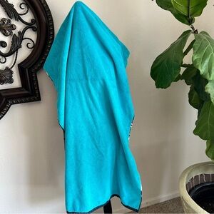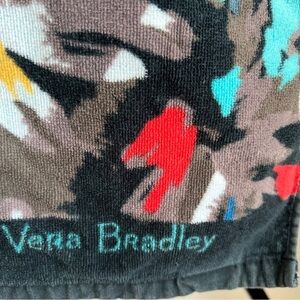 Vera Bradley Splash Floral Cotton Looped Beach Towel Black Turquoise 100% Cotton 63” x 32” in great condition!! Colors included Red, Yellow, Black, Turquoise, Blue, White, Gray, and Brown. No holes or stains. Photo with white square shows manufacturer imperfection. Slight fading around boarder. Pls see all photos as they are part of my description.