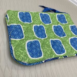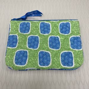 Vera Bradley Square Floral Pattern Clutch Zip Wallet Blue Green 7" x 5"