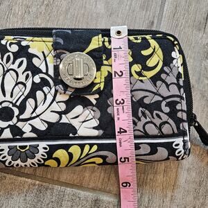 VERA BRADLEY Black Gray Yellow Paisley Quilted Flap Turnlock Wallet
