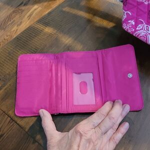 Vera Bradley Stamped Paisley Euro Wallet - snap closure - exterior zippered compartment - interior bill fold, I'd slot and credit card slots 5.5"L x 4.5"H x .75"W NWT