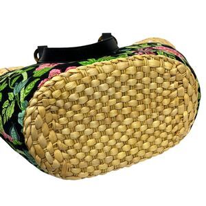 Vera Bradley Straw Beach Tote Bag Black Floral Capri Melon Tie