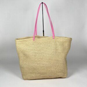 Vera Bradley Straw Beach Tote Bag Sea Turtle Pink Double Handles Open Top