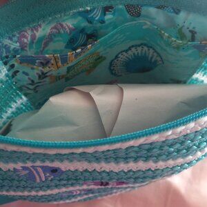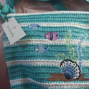 Never been used Vera Bradley Straw Cross Body Handbag is no longer on website and originally $115 retail!! Turquoise blue color with fish and scallop seashell !! Perfect for you next seaside adventure or your love of the Ocean everywhere you go!!