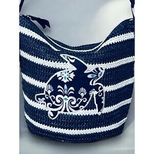 Vera Bradley Straw Bucket Crossbody Steel Blue Medallion Sea Turtle NEW!