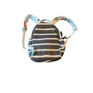 Vera Bradley Striped Mini Backpack Red Anchor Embroidery Adjustable Floral Strap