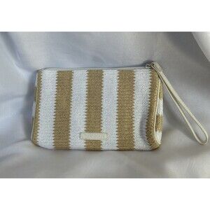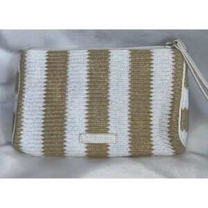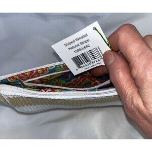 Vera Bradley Striped Wristlet in Natural Stripe With Metallic Threading NWT Faux Leather Trim