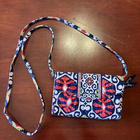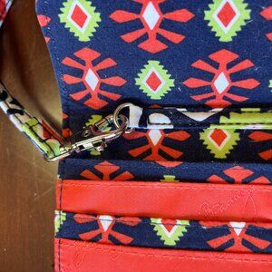 Vera Bradley Sunny Valley Crossbody Wallet Orange Navy Blue Quilted Bag