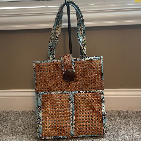 Vera Bradley Tiki Tote Double Handle Shopper Beach Rattan Overlay, UGC