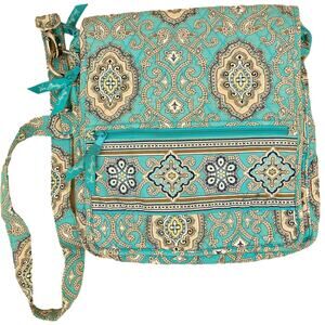 Vera Bradley Totally Turk Teal Brown Crossbody Bag Medium (retired)