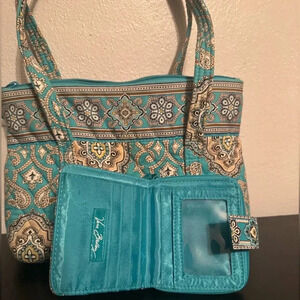 Vera Bradley Totally Turquoise Purse W/ Matching Wallet