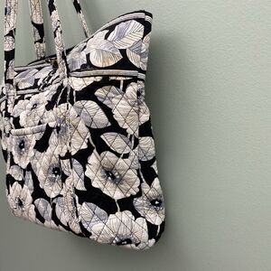 Vera Bradley Tote Bag Purse Black White Floral Quilted Cotton Cottagecore