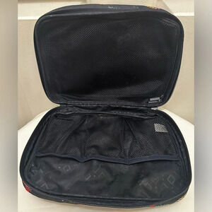 Inside has a zipper mesh on one side and there mesh compartments on the other side.