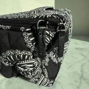 Stylish and functional Vera Bradley travel cosmetic bag in a quilted black-and-white paisley print. Perfect for organizing makeup, toiletries, or travel essentials. This bag is brand new with tags (MSRP $44).