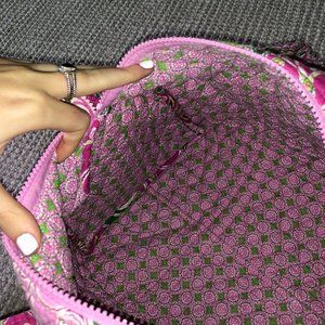 Pink and green patterned Vera Bradley Duffle Bag. One large compartment. Small size duffle bag. Pink zipper. Inside is also pink and green patterned. Lightly used kept in very good condition.