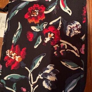 This Vera Bradley pill case showcases a striking black and red floral pattern called Perennials Noir and is crafted from quilted fabric for durability and style. The inside contains an 8 day pill organizer. This Vera Bradley is NWT Thanks for looking!