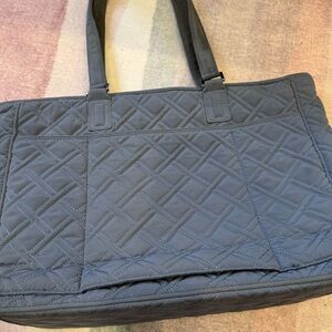 Good used condition, minor discoloration on the handles as shown. From a smoke free pet free home. Super spacious and lightweight travel bag with pockets galore! Zippered outside pocket, laptop compartment and 3 inner pockets. Zippered top. Slides on a rolling suitcase.