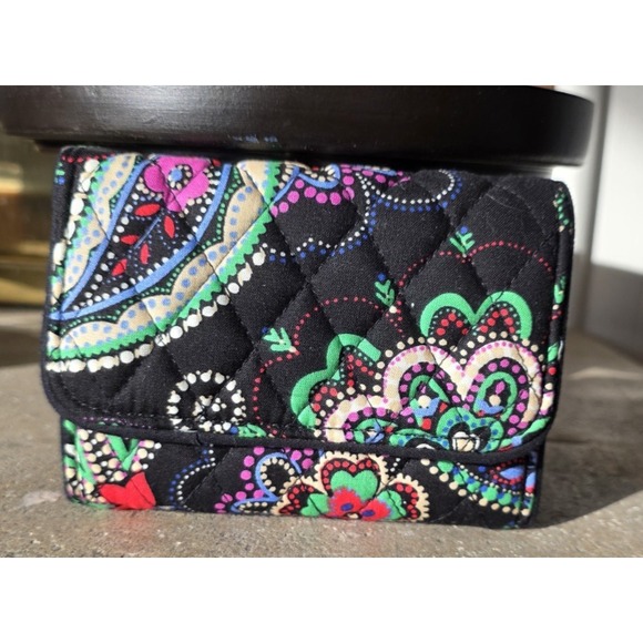 Vera Bradley Tri Fold Wallet Kiev Paisley Floral Quilted Boho Artsy Maximalist