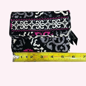 Vera Bradley Tri-Fold Wallet Accordion Quilted Cotton Black Pink ID Card Case