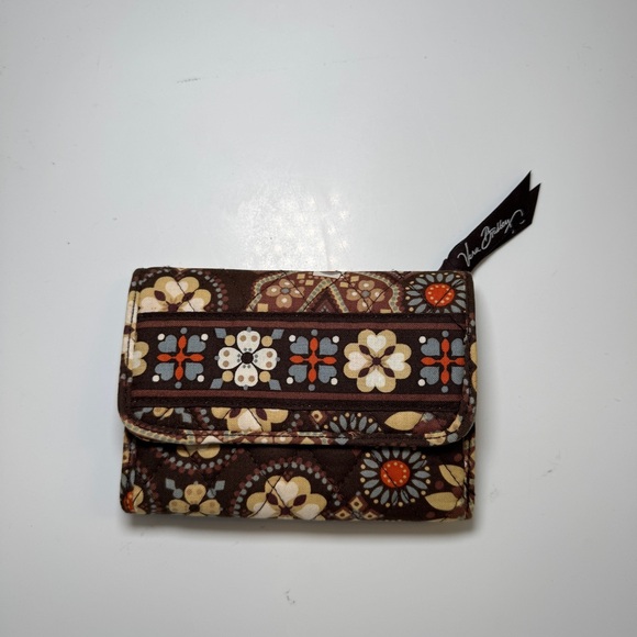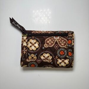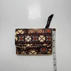Vera Bradley Tri-Fold Wallet Cotton Quilted Brown Floral Paisley Y2K Boho Hippie