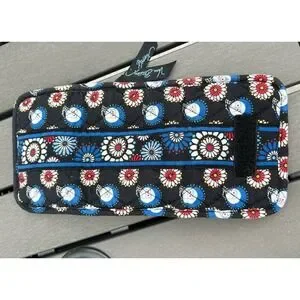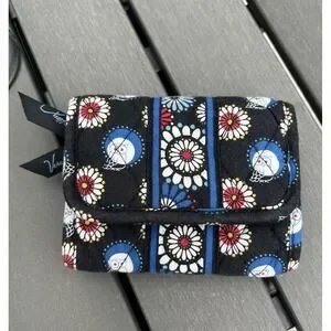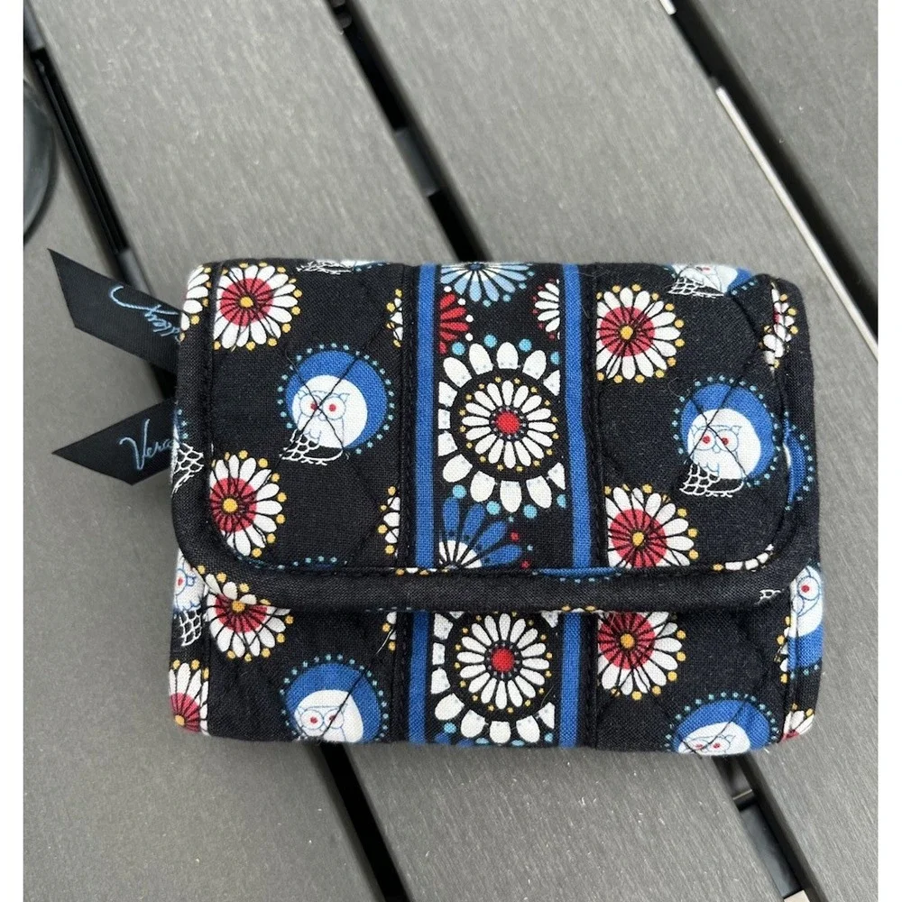 Vera Bradley Trifold Pocket Wallet Compact Coin Purse Night Owl Red White Blue