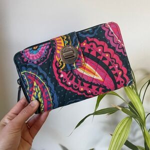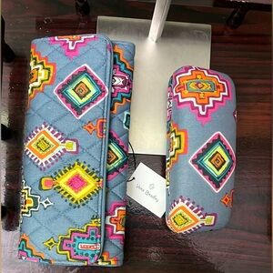 ๐ Vera Bradley Trifold Wallet Aztec Blue New With Tags and Glasses Case Bundle