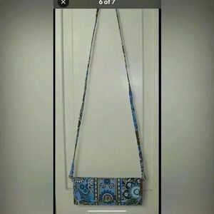 Vera Bradley Trifold Wallet Crossbody Strap in Bali Blue