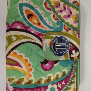 Brighten your day with this vibrant Vera Bradley wallet. Featuring a lively mix of green, pink, and orange, it's perfect for adding a pop of color to your accessories. normal wear see pics for small stain , pre-owned great Condition