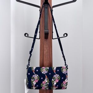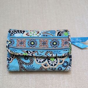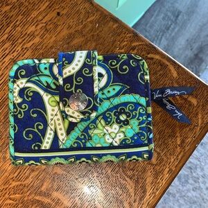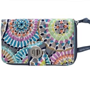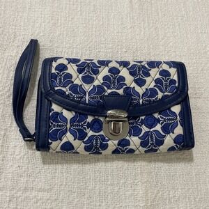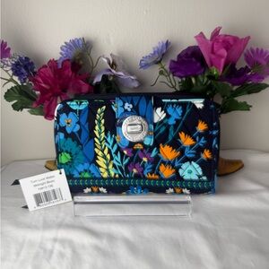 Vera Bradley Twirly Birds turn lock Wallet zip around and turn lock navy white