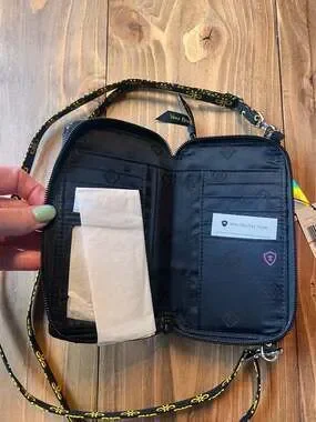 The versatile design allows it to be used as a wallet, a wristlet, or a crossbody bag with the included adjustable and removable straps. It features multiple card slots, an ID window, several slip pockets, and a zippered compartment for coins or phone storage. Brand new with tags attached.