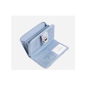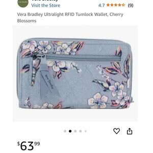 Vera Bradley UltraLight RFID Turnlock Wallet / Measurement-Width 7.75” inch, Height 4.75” inch, Depth 1.0” inch / Color-Blue Cherry Blossom / Like New / Turn Lock Closure / Silver Tone Hardware