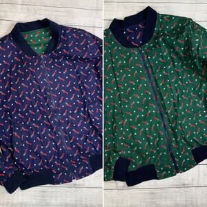 Vera Bradley VINTAGE Women's Reversible GOLF Bomber Jacket Blue Green Size Large