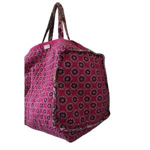 The Vera Bradley Duffel Bag in Very Berry Mauve Purple is a stylish and functional weekender bag perfect for travel, parties, casual outings, or workwear. With a rectangular shape and extra-large size, this duffel bag features a zip closure, double purple handles, and a quilted finish. Made from cotton fabric with a paisley pattern, this bag includes accents like tassel, zipper, and logo details. It also includes bottle pockets and outer pockets for added convenience, making it a versatile and on-trend accessory for women on the go.