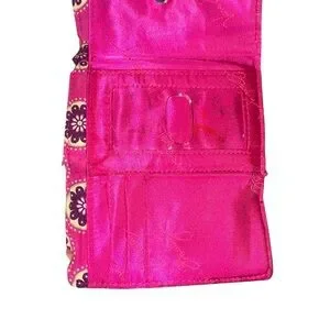 Brighten up your accessories with this Vera Bradley wallet in a vibrant pink paisley floral pattern. Features a vintage-inspired kisslock closure and multiple compartments to keep your essentials organized. The quilted cotton fabric is lightweight yet durable, perfect for everyday use or adding a pop of color to your outfit. boho chic, cottagecore, floral print, paisley print, quilted cotton, travel wallet, statement accessory, colorful clutch, retro style, spring style, summer style