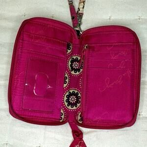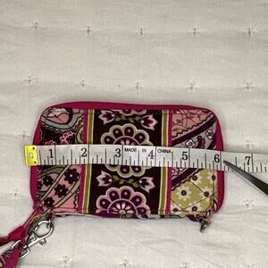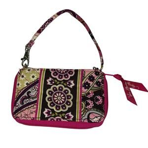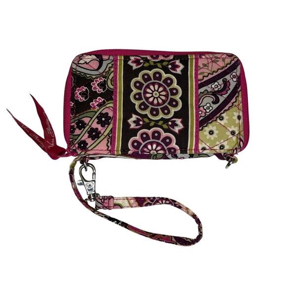 Carry your essentials in timeless Vera Bradley style with this Very Berry Zip Around Wristlet Wallet Retired in the 1990s, the pink, purple, & green quilted floral and paisley print is both classic and collectible.