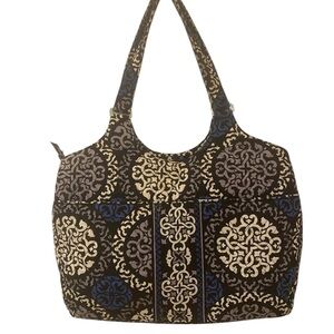 Vera Bradley Vintage Blue Medallion Quilted Large Tote Purse Bag Retired Print