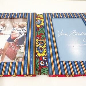 Vera Bradley Vintage Double Photo Striped Floral Garden Fabric Photo Frame