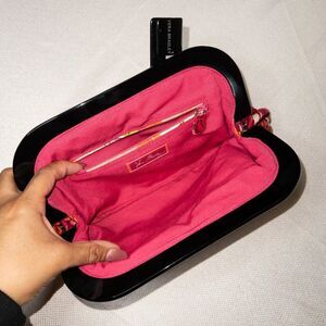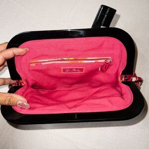 Add a pop of color to any outfit with this Vera Bradley Vintage Rose Millie Floral Quilted Satin Clutch 🌸. Featuring a vibrant pink, orange, and green floral design on soft quilted satin with a sleek black frame, this bag is the perfect mix of classic Vera Bradley charm and timeless elegance.